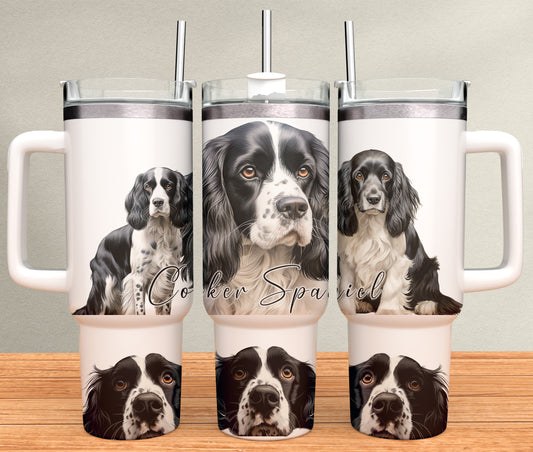 40oz Tumbler - Cocker Spaniel Black and white dog
