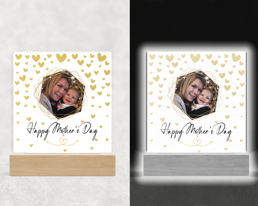 Happy Mother's day with gold hearts - LED Night Light - Personalise with photo