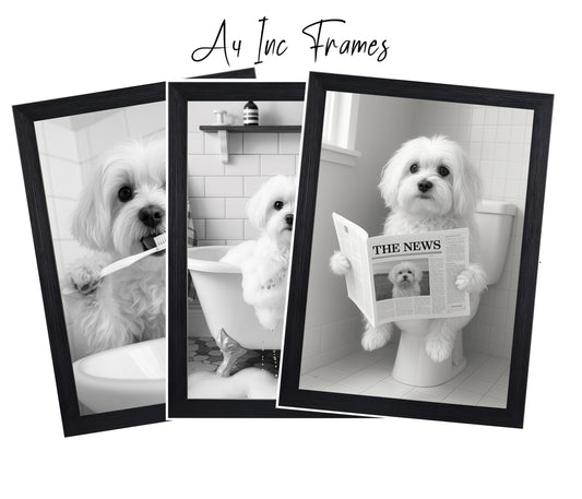 Maltese Bathroom Wall Art Prints – Funny Dog Decor l A4 or A3 l Set of 3