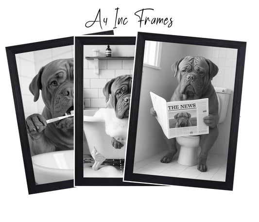 Dogue de Bordeaux Bathroom Wall Art Prints – Funny Dog Decor l A4 or A3 l Set of 3