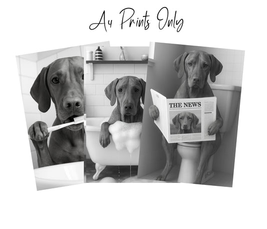 Vizsla Bathroom Wall Art Prints – Funny Dog Decor A4 or A3 Set of 3