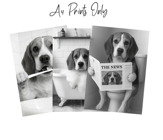 Beagle Bathroom Wall Art Set | Funny Dog Prints (A4 & A3 Options)