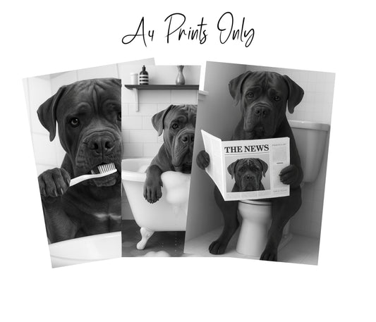 Cane Corso Bathroom Wall Art Prints – Funny Dog Decor l A4 or A3 l Set of 3