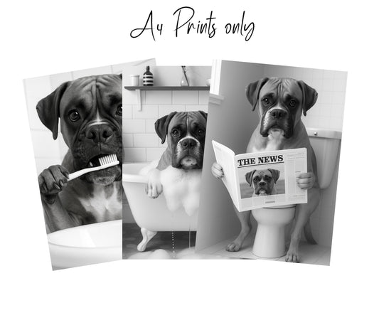 Boxer Dog Bathroom Wall Art Prints – Funny Dog Bathroom Decor (A4 & A3 Sizes)