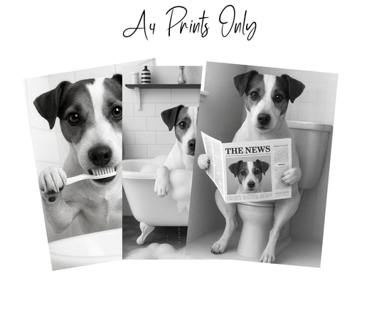 Jack Russell Bathroom Wall Art Prints – Funny Dog Decor l A4 or A3 l Set of 3