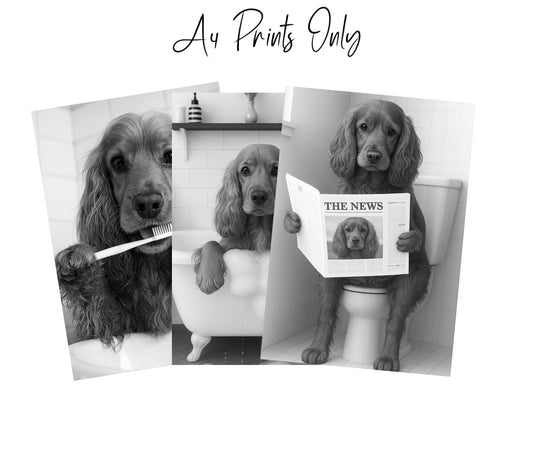 Cocker Spaniel Bathroom Wall Art Prints – Funny Dog Decor l A4 or A3 l Set of 3