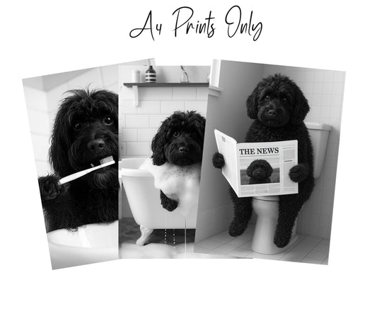 Black Cockapoo Bathroom Prints | Funny Dog Wall Art | A4 & A3 Options