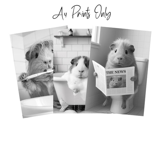 Guinea Pig Bathroom Wall Art Set – Funny Black & White Prints
