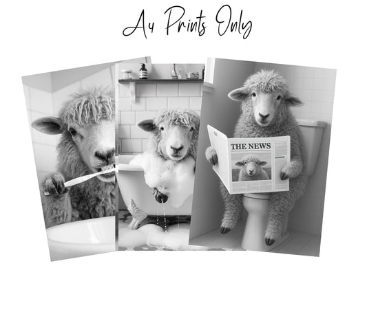 Sheep Bathroom Wall Art Prints – Funny Farmhouse Decor A4 or A3 Set of 3