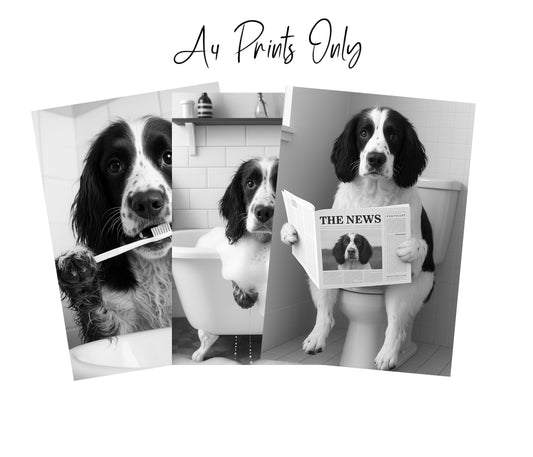 Springer Spaniel Bathroom Wall Art Prints – Funny Dog Decor l A4 or A3 l Set of 3