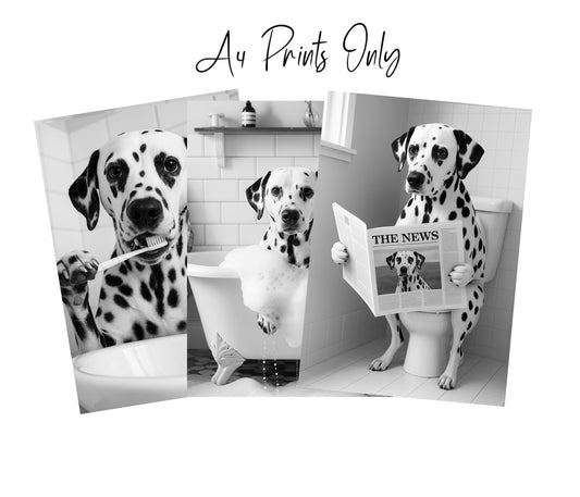 Dalmatian Bathroom Wall Art Prints – Funny Dog Decor l A4 or A3 l Set of 3