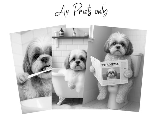 Shihtzu Dog Bathroom Wall Art Prints – Funny Dog Bathroom Decor (A4 & A3 Sizes)