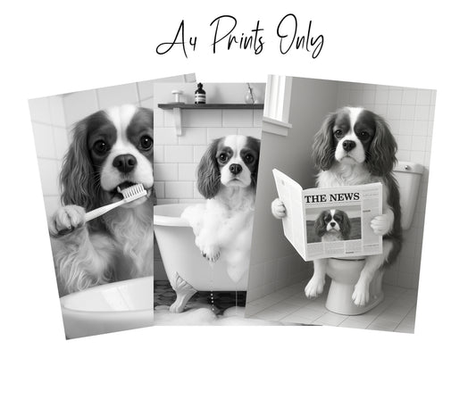 Cavalier King Charles Bathroom Wall Art Prints – Funny Dog Decor l A4 or A3 l Set of 3