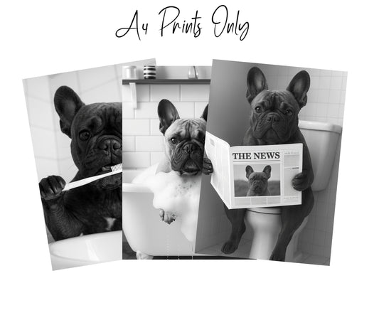 French Bulldog Bathroom Wall Art Prints – Funny Dog Decor l A4 or A3 l Set of 3