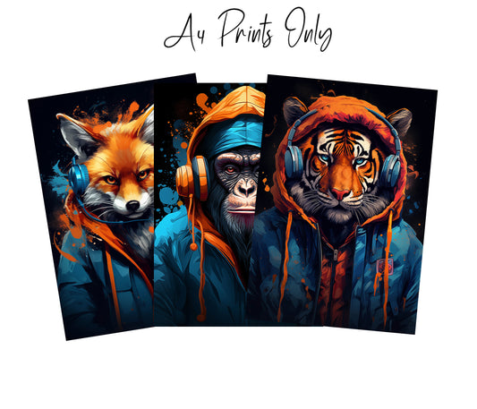 Animal Gaming Prints – Fox, Monkey & Tiger | A4 & A3 Wall Art