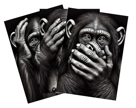 Three Wise Monkeys – Black & White Wall Art Set | See No Evil, Hear No Evil, Speak No Evil (With or Without Frames)