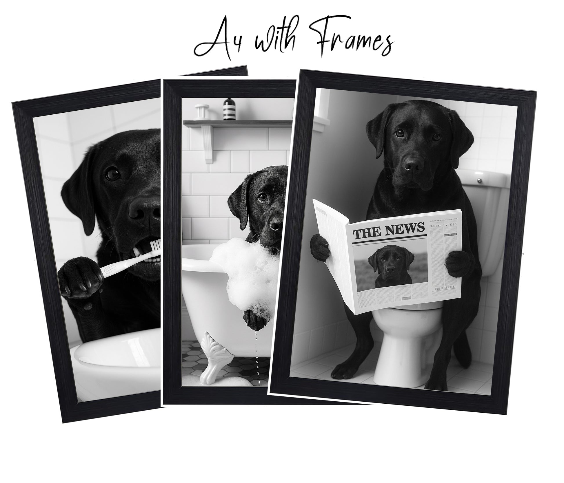 Black Labrador Bathroom Wall Art – Funny Dog Bathroom Decor (Set of 3 Prints)
